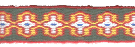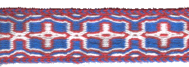 ![]() December 2003 This is a section of a belt using a quite low-contrast leaf pattern, in 20/2 and 30/2 silk. That I happened to weave this in December has absolutely nothing to do with the colours! :) |